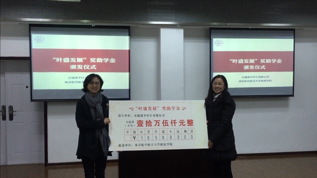 接着无锡透平叶片公司向 a片网站 进行了本年度奖助学金捐赠仪式,之后陈部长为本年度获奖学生颁发了奖学金证书。
