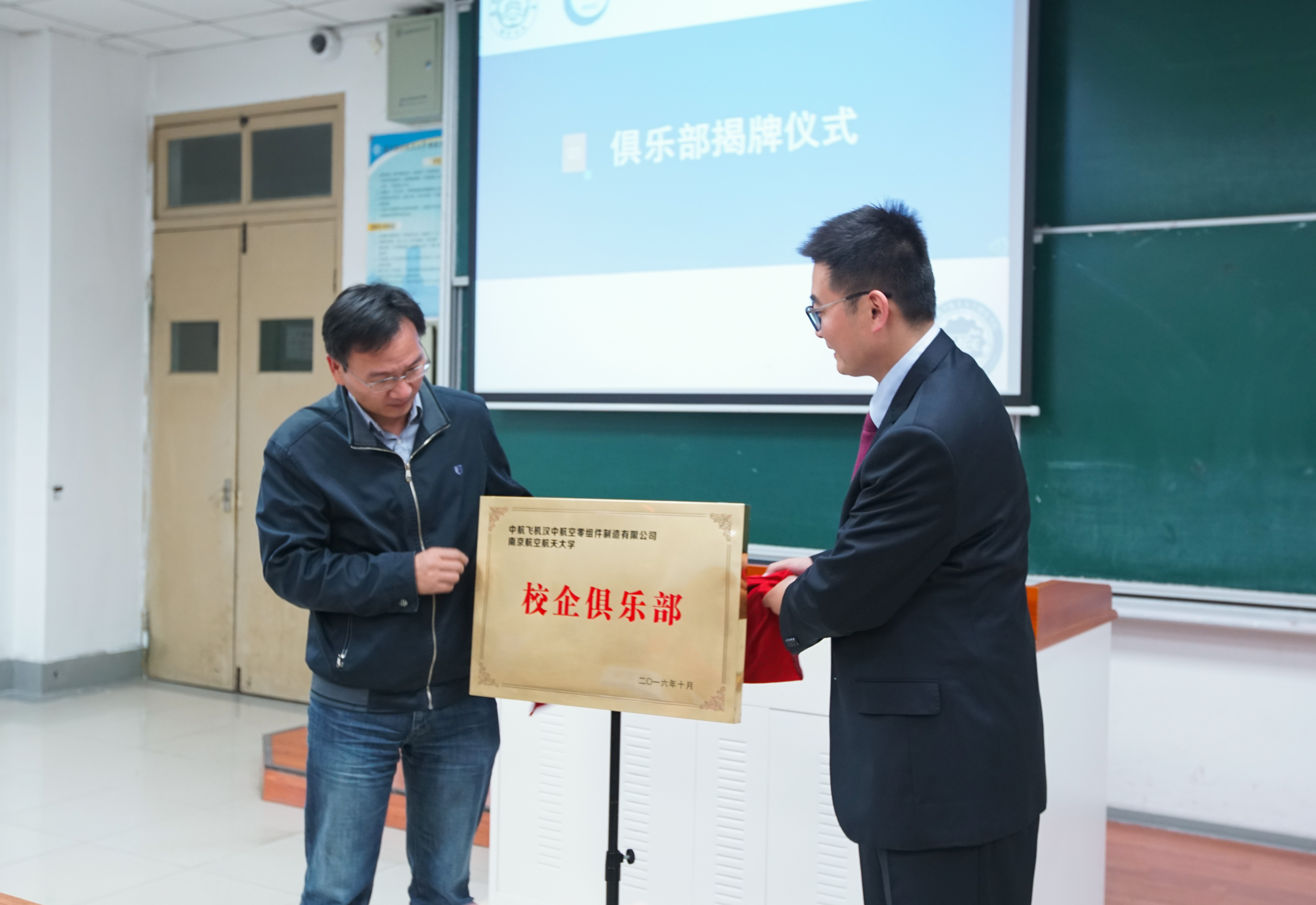 本次活动由许赞副书记主持,活动伊始,a片网站 党委书记陈文亮教授致欢迎辞,拉开了此次仪式的序幕。在开营仪式上,汉中零组件公司总经理李新伟进行了a片网站宣讲,介绍了公司的基本情况、生产能力和航空零组件制造业的前景,并且表达了对同学们加入公司的殷切希望和求贤若渴的心情。发言结束后,李新伟总经理和陈文亮书记一同揭开了俱乐部的铜牌,也为我们打开了走向零组件公司的大门。