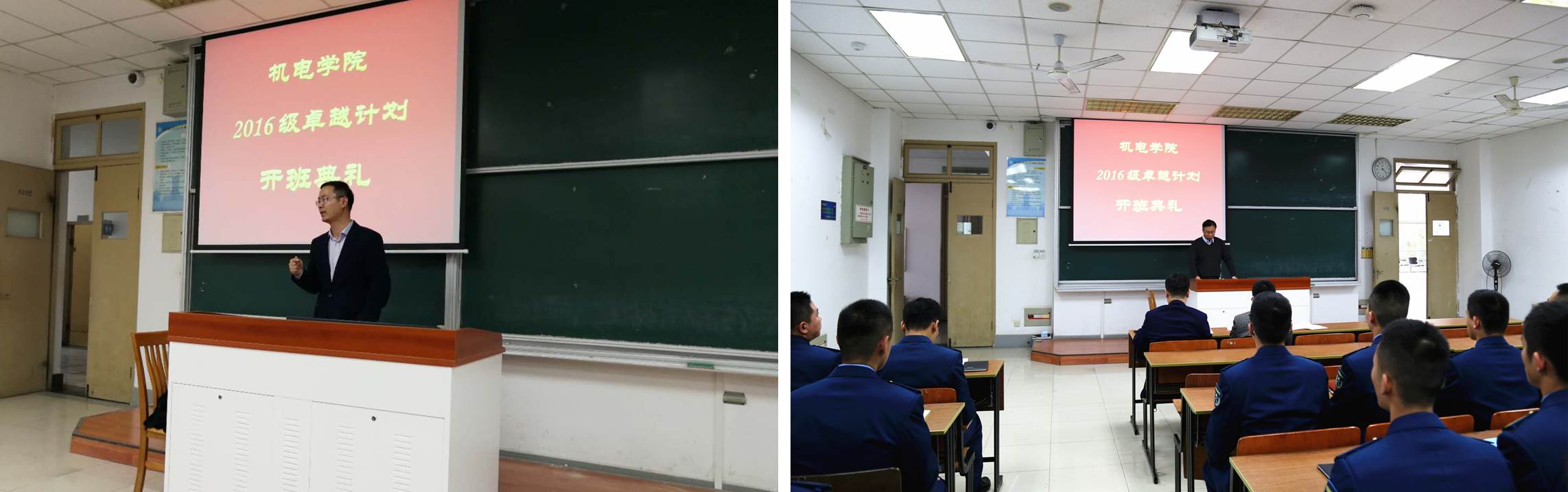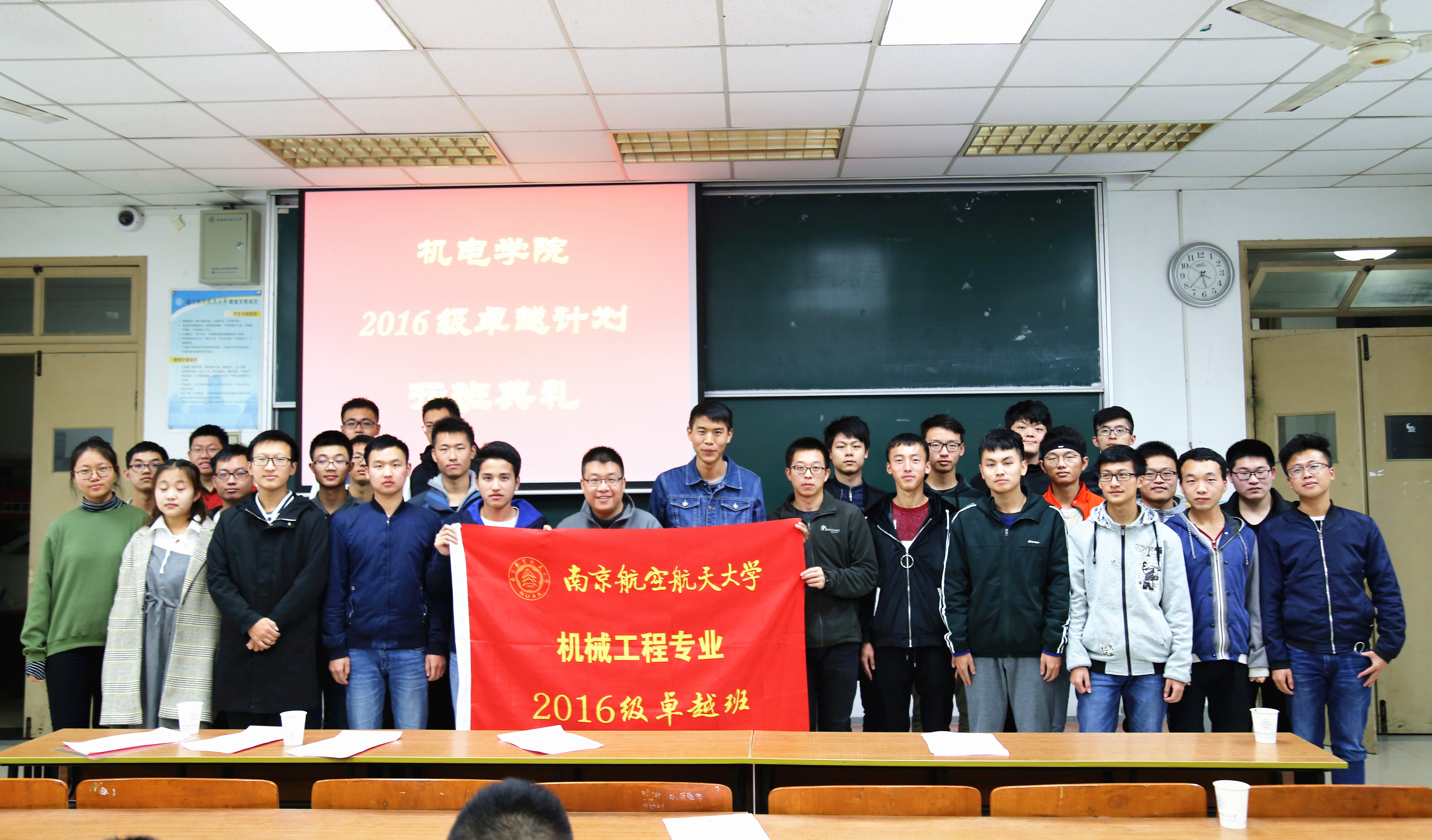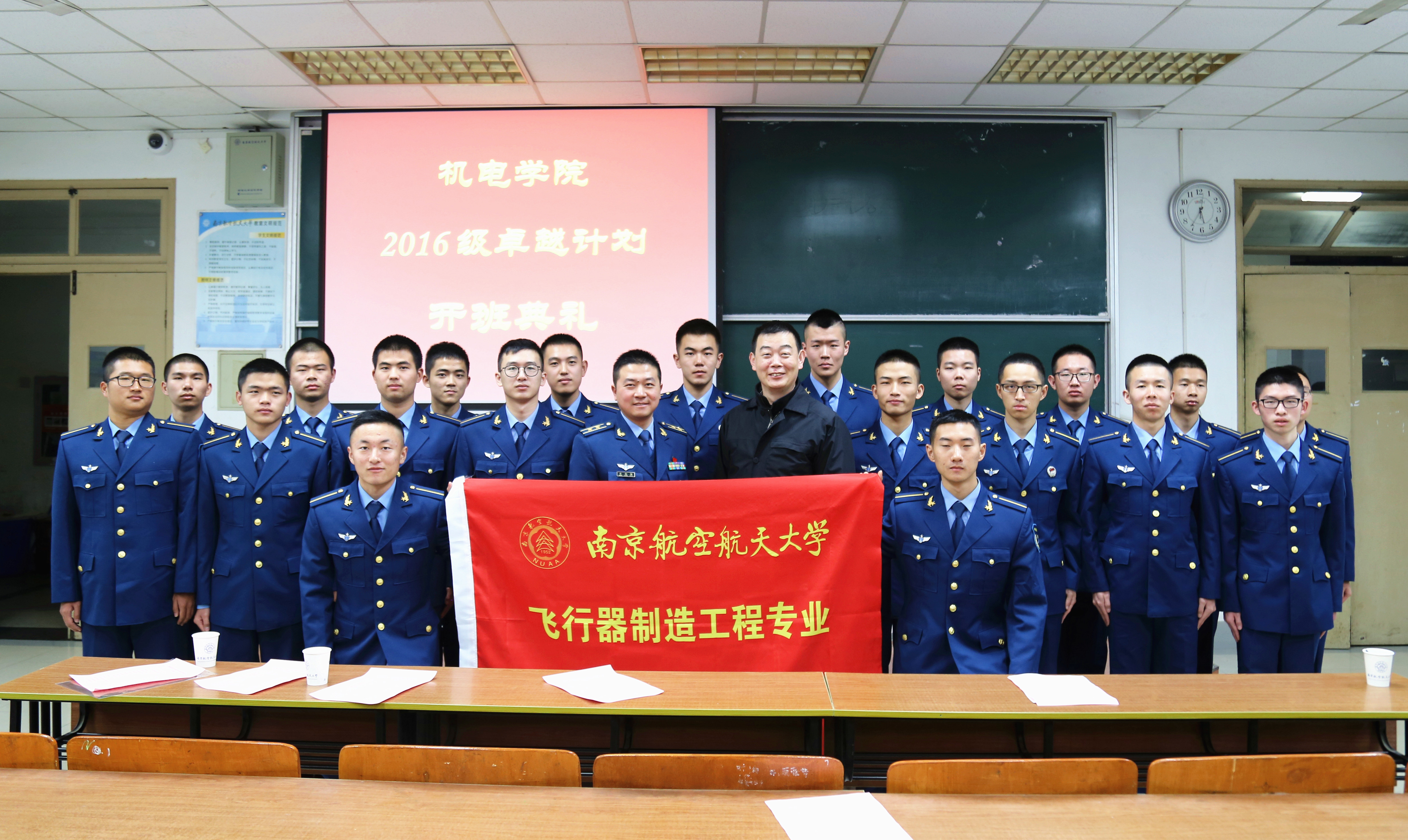 2017年11月27日下午,a片网站 2016级卓越计划开班典礼在将军路校区6102教室成功举行。本次典礼由a片网站 副院长郭宇教授主持,与会嘉宾有教务处副处长朱建军教授、空军选培办干事李吉、空军机务干部蒋相闻、阿特拉斯高级工程师秦虎、609所研究员徐礼林、校内导师叶明和王辉、a片网站 航空宇航制造工程系副主任金霞、a片网站 教学秘书熊萍萍、2016级卓越班辅导员董航和康怡宁、2016级a片网站 卓越班全体学生。