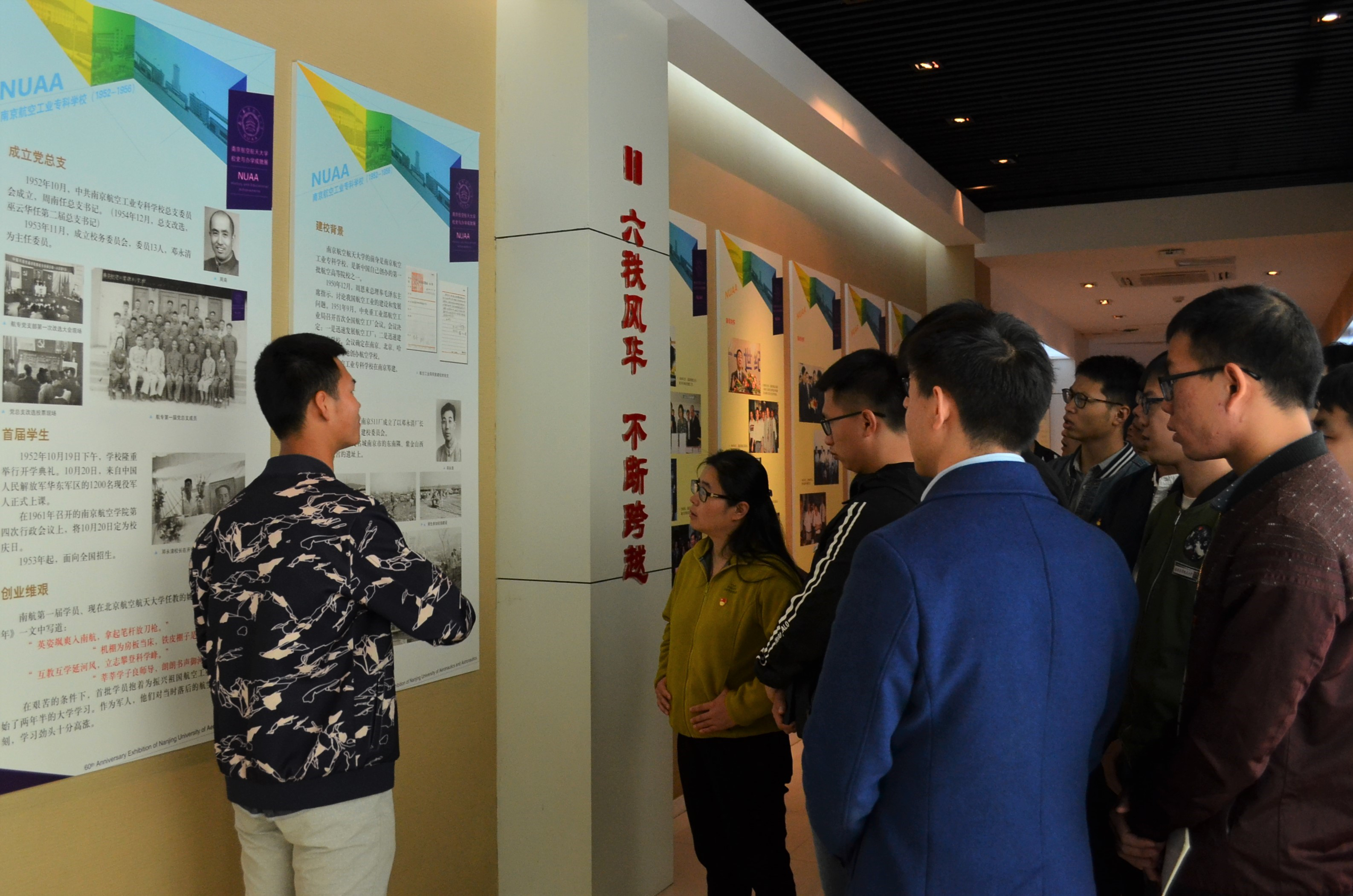 校史馆。在讲解员的带领下,党员们回顾了南航66年的发展历史,专业的飞机模型、灿烂的荣誉奖章、金工实习用具等一些充满历史印记的场景吸引了大家的兴趣,党员们积极地和讲解员进行交流,认真聆听历史背后的故事。