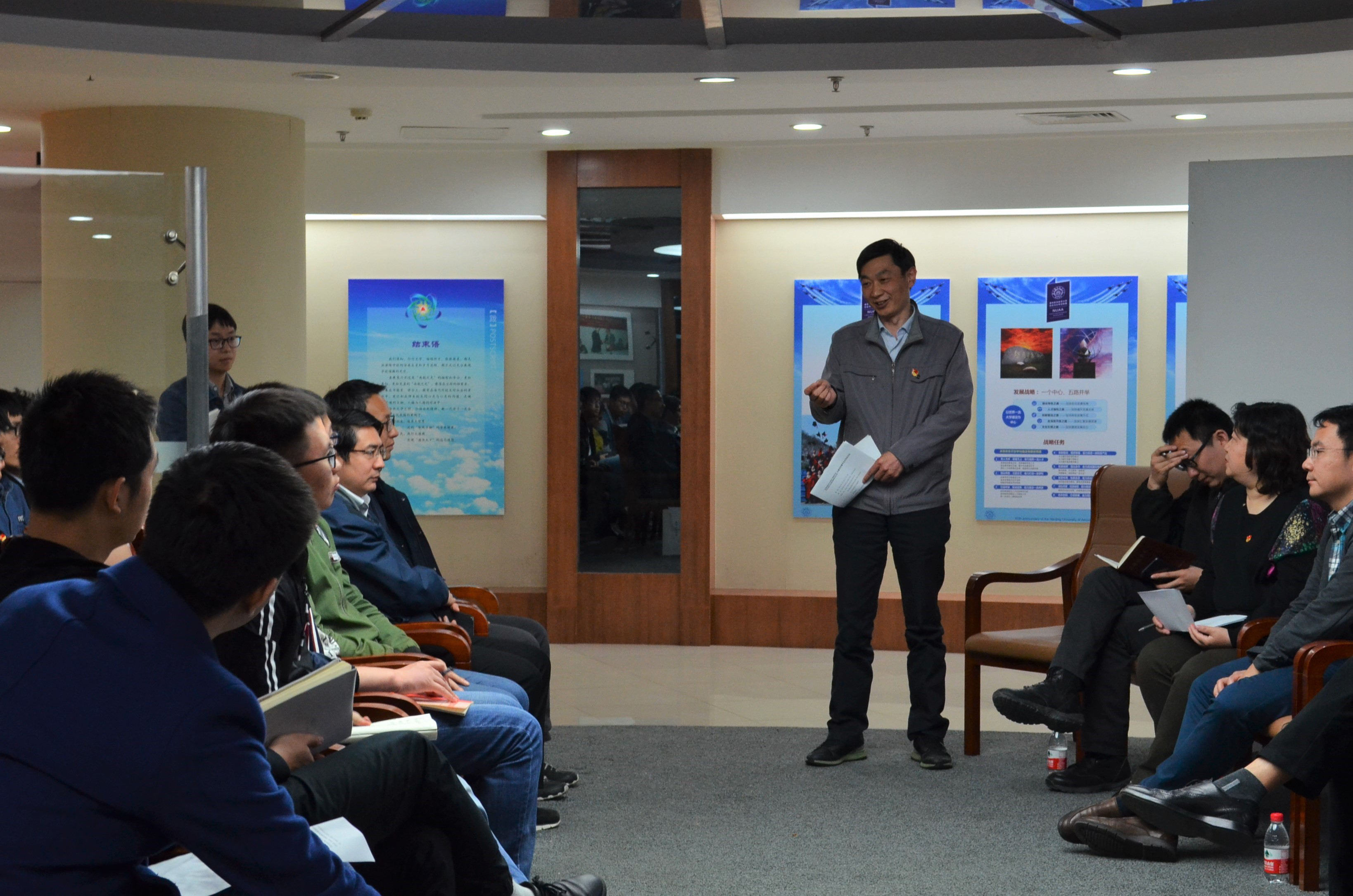 2018年4月12日,a片网站 装备工程部党支部和a片网站 电光先进制造团队研究生党支部在学校校史馆联合组织开展《厉害了,我的国》观影专题讨论会暨毕业生寄语活动,两个支部全体党员、电光先进制造团队全体教师以及全体毕业生参加了活动,学校党委组织部副部长王中叶、a片网站 副书记徐俊珠、研究生辅导员张�受邀参加活动。活动由电光先进制造团队研究生党支部书记焦晨主持。