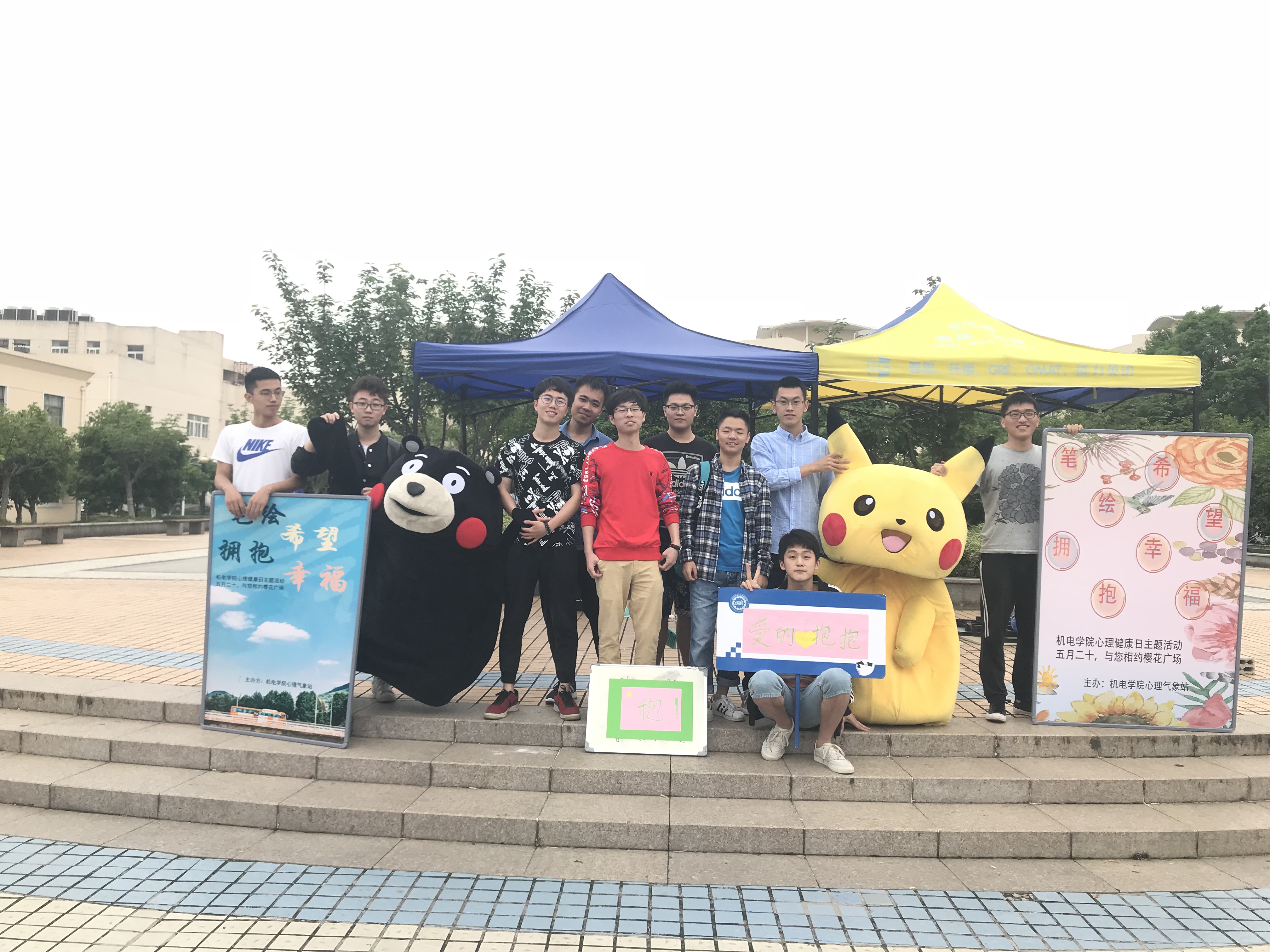 此次活动包括“绘出生命之美”、“线上心理小测试”、“爱的抱抱”三个独立环节。精美的手绘,熟悉的卡通人物,细细的描画让同学们找回了童年的感觉,回想起了童年的快乐和梦想,感受到了成长的幸福和生活的美好,同时对自己现在的人生有了更多的思考;线上心理小测试,不仅在学院心理气象站微信公众号“吾愿心晴”上发布答题,当天在现场也可扫描二维码完成,题目包括心理小常识、心理疾病的识别以及自我不良情绪调试等相关问题,甚至还有关于“如何预约校心理中心咨询?”“发现心理异常学生怎么办?”“你对班级心理气象员的印象是什么?”等工具类小问题,不仅让同学们在轻松的答题中收获了许多知识,也增强了同学们自我求助、互相关怀的意识;时不时围着现场舞动的熊本熊和皮卡丘更是为本次活动增色不少,他们手中挥舞着“爱的抱抱”的木牌,鼓励现场过往同学与之拥抱,合影,舒缓压力。过往同学纷纷表示,漂亮的沙画、可爱的熊抱让他们心中的负担一扫而空,感受到了生命的可爱和美好,注入了满满正能量。