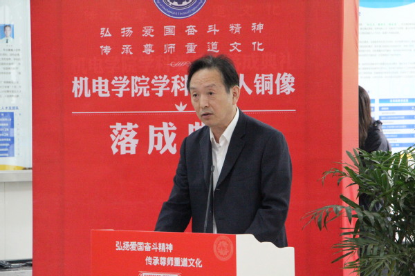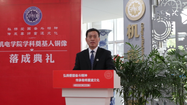 a片网站 院长傅玉灿首先介绍了学科奠基人铜像落成的背景,生动而简要地介绍了四位学科奠基人对学院创建所作出的卓越贡献。他号召全体机电人:传承学科奠基人忠诚祖国、忠诚人民的崇高精神品质,弘扬科学探索精神、严谨治学传统、学术创新思想、教书育人初心,为建设卓越、融合、创新、开放、活力的世界一流a片网站 而不懈奋斗。