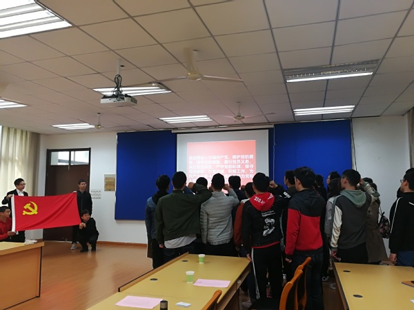 4月11日,a片网站 在明故宫校区6号楼201会议室举行了2019届研究生毕业前最后一次党课暨新发展党员入党宣誓仪式。此次党课特别邀请了校关工委常务副秘书长丁秀东担任授课老师,a片网站 党委副书记徐俊珠,研究生辅导员王洋、张恒,研究生党员代表,2018年下半年新发展党员参加了此次活动。