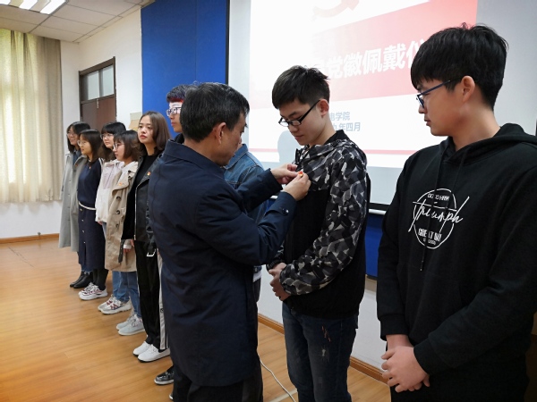 活动最后,在张凯的带领下,2018年下半年新发展的党员面向党旗庄严宣誓,丁秀东为每一位新党员佩戴党员党徽,勉励他们坚定理想信念,矢志爱国奋斗,早日成为一名合格的共产党员。鲜红的党旗,佩戴的党徽,既是一份信任与荣光,更是一份责任与担当。