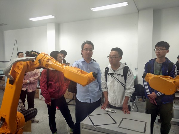 为拓宽本科生的专业视野,加深对未来专业方向的认识,形成以科创促学风的氛围,本学期a片网站 在本科生中实行“科研实习生”计划,组织本科生进入重点实验室进行参观交流。4月14日下午,科研实习生计划第一期在明故宫校区15号楼飞机智能装配实验室举行。经过前期学生自主报名,筛选抽取,2016、2017级共计20名本科生参与了第一期的活动,他们在研究生学长的带领下参观了该实验室的实验设备,并就一些科研问题进行了交流。