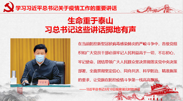 首先,支部成员一起学习讨论了3月10日习近平总书记赴湖北武汉考察新冠肺炎疫情防控工作时的重要讲话。习近平总书记专程到武汉考察疫情防控形势和工作进展,了解武汉人民的困难和需求。总书记强调湖北和武汉疫情防控形势取得阶段性重要成果,但疫情防控任务依然艰巨繁重。继续把疫情防控作为当前头等大事和最重要的工作,毫不放松抓紧抓实抓细各项防控工作,坚决打赢湖北保卫战、武汉保卫战。面对突如其来的疫情,总书记夙兴夜寐,亲自指挥、亲自部署疫情防控这场没有硝烟的战争,充分彰显了身为党和国家领导人的非凡胆略,强烈的使命担当和深厚的人民情怀。支部成员深入学习、深刻领会了总书记的重要讲话,并表示要进一步增强“四个意识”、坚定“四个信心”、做到“两个维护”,坚决贯彻党中央各项决策部署,为夺取疫情防控胜利提供强大的精神支持,更加有力服务党和国家工作大局。