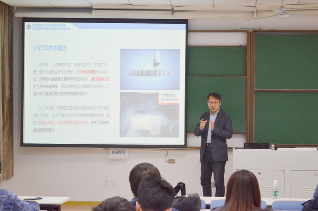 沈理达首先从制造技术的起源及发展历程出发,向同学们系统阐述了“增材、减材、等材”等三种不同的制造途径,进而引出3D打印技术的概念,并详细介绍了3D打印的制造原理以及制约3D打印技术发展的因素,包括3D模型、材料限制、工艺限制等。并用有关数据直观展示了3D打印技术相对于传统制造技术的独特优势。