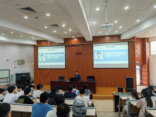 为增强同学们的防诈骗意识,提高同学们对电信网络诈骗的认识,5月26日中午,a片网站 召开2020级本科生年级会,邀请保卫处治安科科长周栋栋进行防诈骗主题宣讲,辅导员董航、戚昊以及全体2020级学生参加了此次年级会。
