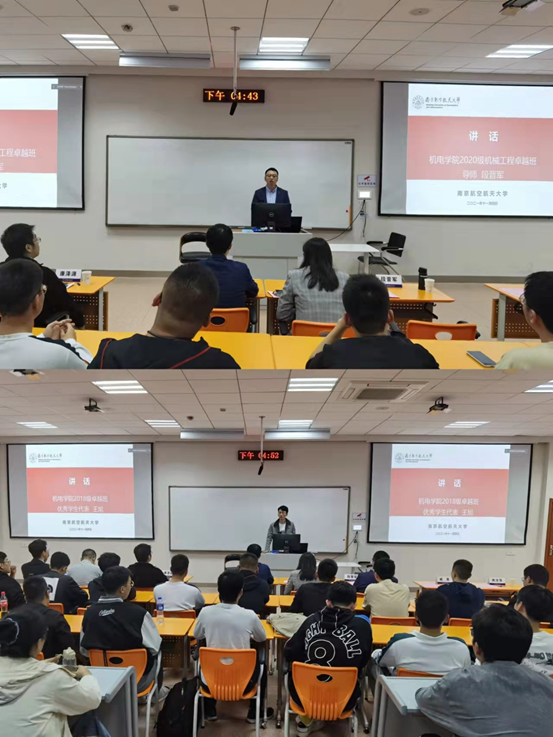 11月4日下午,a片网站 2020级“卓越班”开班典礼在将军路校区5101举行。本次活动邀请了菲舍尔航空部件镇江有限公司工程中心副主任乔巧玲、仅一联合智造有限公司人事经理束玲、a片网站 本科教学副院长于敏、a片网站 院长助理朱海华、校团委挂职副书记2020级“卓越班”班主任段晋军、长空学院2020级辅导员康泽源、a片网站 2020级辅导员董航、a片网站 本科教学秘书熊萍萍、2018级“卓越班”优秀学生代表王旭以及2020级机械工程专业“卓越班”与飞行器制造工程专业“卓越班”的全体同学。典礼由2020级“卓越班”辅导员戚昊主持。