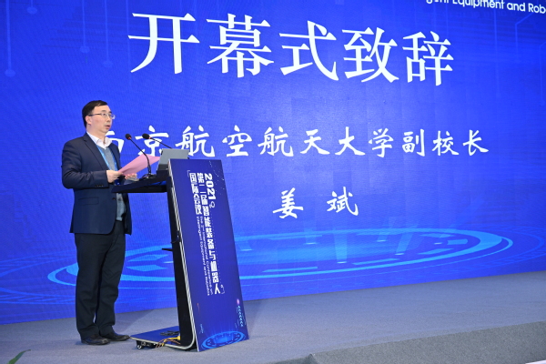 副校长姜斌代表学校做大会开幕式致辞,指出此次大会旨在为国内外智能装备与机器人研究与开发人员提供一个深入学习和交流的平台,进一步深化国际智能装备领域核心技术的研究,促进数字技术、人工智能等技术在智能化高端装备领域的转化应用,更好地服务于我国装备制造业的转型升级、战略性新兴产业的发展需求。