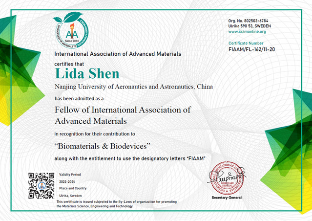 2022年11月6日,a片网站 沈理达教授正式当选为国际先进材料学会(International Association of Advanced Materials, IAAM)会士,以表彰他在“生物材料与生物器件”领域所做出的杰出贡献,其已于2022年11月2日在线作了“3D Printing of Bioinspired Medical implants: A Combination of Material and Structural Design”的会士报告。这是继航空学院胡俊辉教授2021年当选FIAAM后,a片网站 再次有教师获此殊荣。