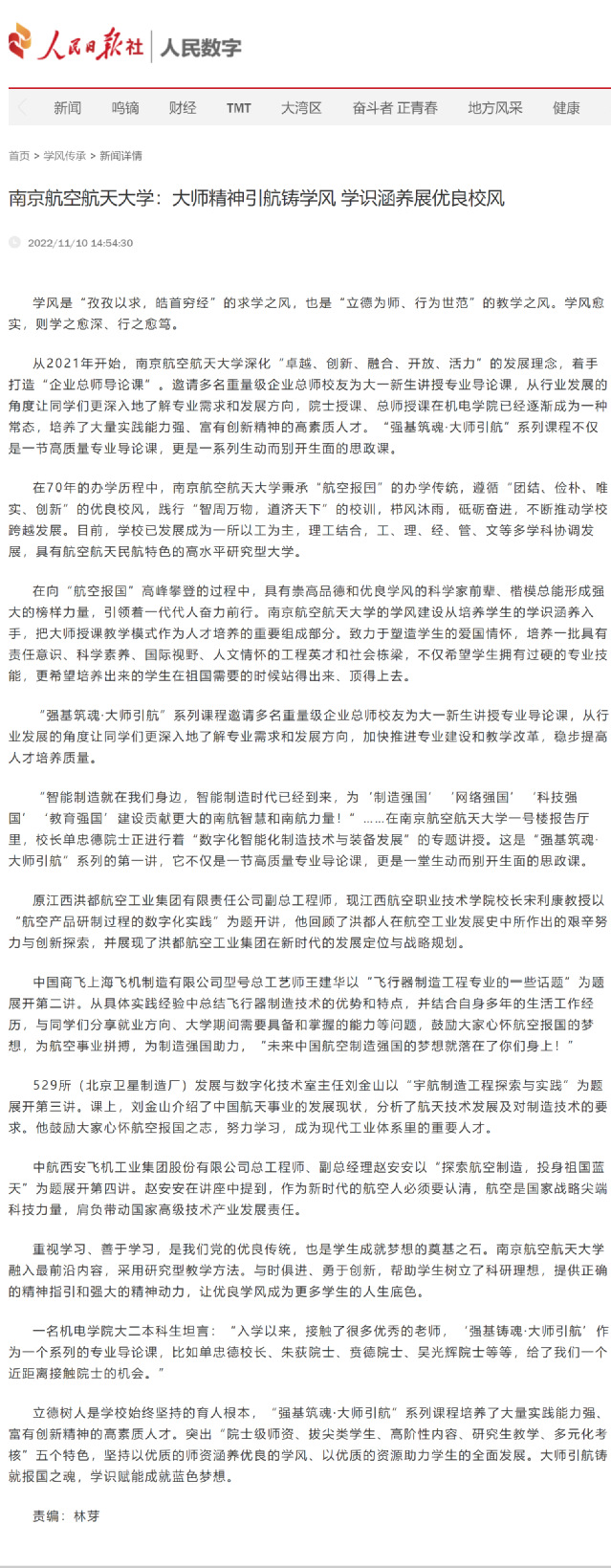 编者按:11月10日,人民日报社-人民数字专栏文章《a片网站 :大师精神引航铸学风 学识涵养展优良校风》报道 a片网站 大师领航、强基铸魂学风涵养工作室工作开展情况,阐述学院不断加强学风引领、展学学院良好学风素养,现转发全文如下:
