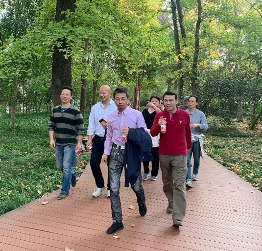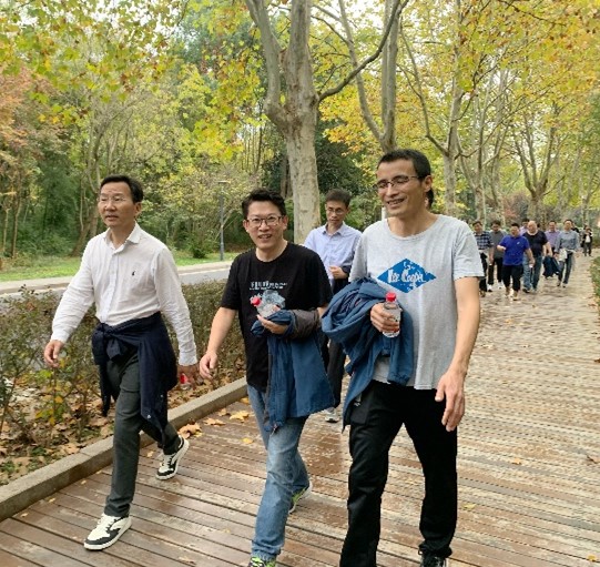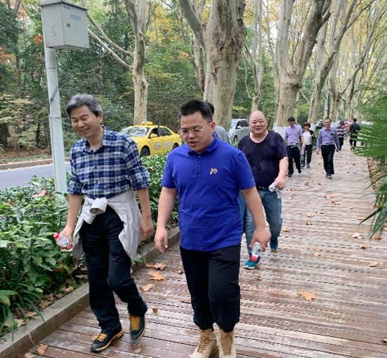 秋日暖阳下,健身正当时。教职工们迈着矫健的步伐,沿中山门大街,环绕中山陵燕雀湖、前湖公园,途经琵琶湖公园、南京城墙前湖处豁口,摆动双臂,阔步前行。老师们呼吸着清新的空气,感受着自然风光,七八人成团、谈四五小事,一路欢声笑语,尽情享受愉悦的时光。