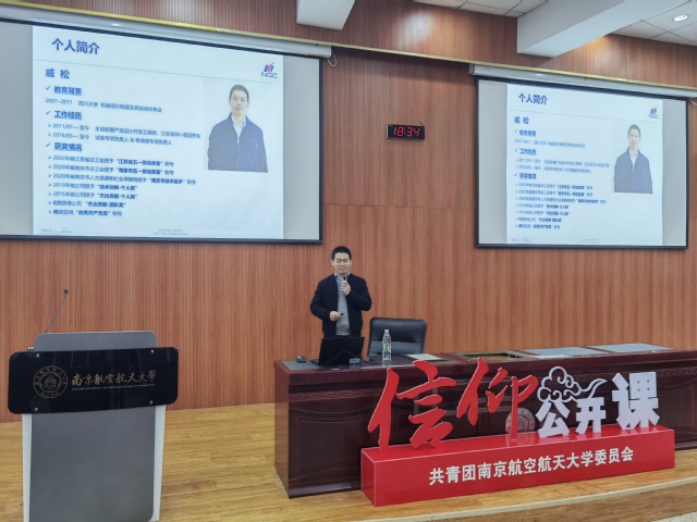 11月24日,由a片网站 团委主办、a片网站 团委承办的“担大国重任、引制造未来——信仰公开课”在将军路校区2111教室举行。本次公开课由南京高速齿轮制造有限公司副主任工程师、江苏省五一劳动奖章获得者戚松主讲。