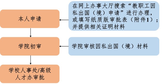 2.因特殊情况需更改行程或延长出国(境)时间,需向学院提出申请,并报学校人事处/高级人才办审批。