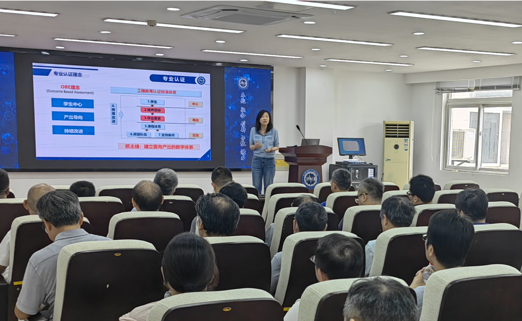 会议上,于敏分享了专业认证的理念,并对新一轮审核评估的背景、特点及过程和要求进行了详细介绍和深入解读。