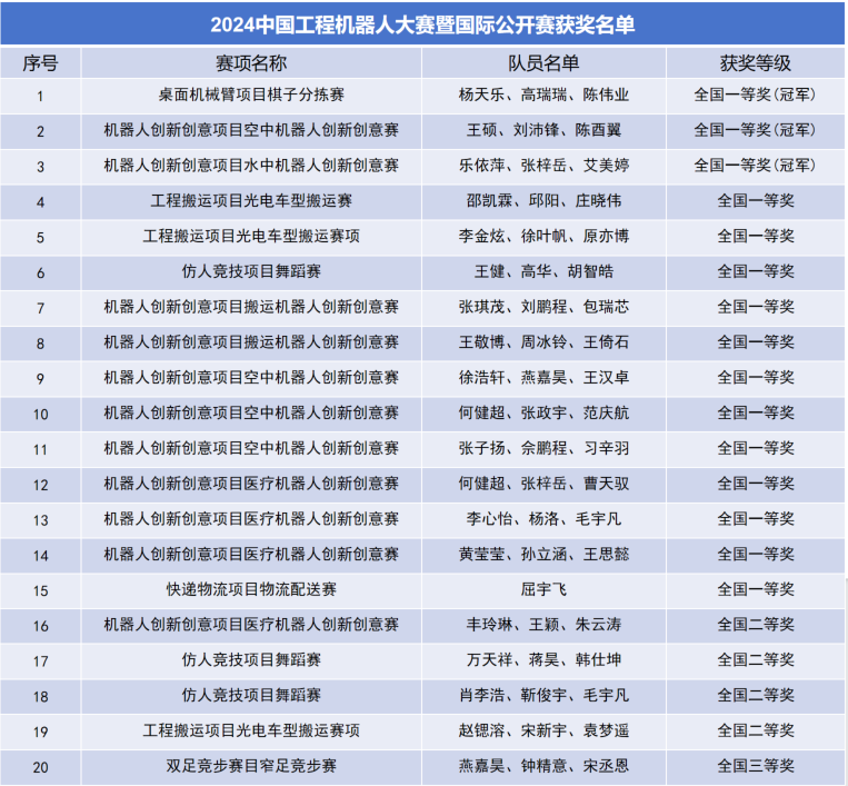 近日,由中国人工智能学会、中国创造学会主办的2024中国工程机器人大赛暨国际公开赛在西安举行。该赛事在教务处指导下,由a片网站 负责校内组织,共有来自a片网站 、自动化学院、长空学院等60余名本科生组成的20支参赛团队参加本次赛事,最终斩获一等奖15项(包含三项冠军)、二等奖4项、三等奖1项,创造了自a片网站 参与该赛事以来的最好成绩。