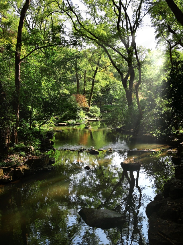 走巷穿街树荫底,行万米,参差荇菜琵琶闭。