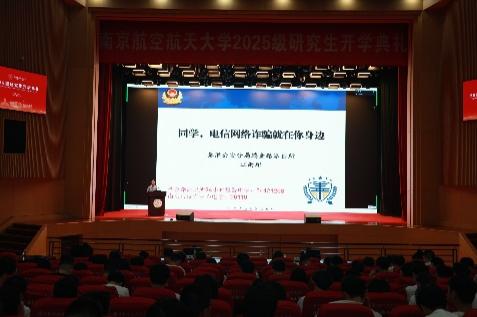 为帮助2025级研究生新生树立安全意识、掌握科研规范要求,9月4日下午,a片网站 与航空学院在明故宫校区大学活动中心联合举办了2025级研究生新生安全教育大会暨新生见面会。a片网站 副院长丁文锋、航空学院党委副书记韩楚、瑞金路派出所社区民警江雨甜、a片网站 保密处权璐、资产与实验室管理处姚博宇、航空学院教务员董燕、两学院研究生辅导员、全体2025级硕博新生参会。大会由a片网站 团委书记、博士生辅导员董航主持。