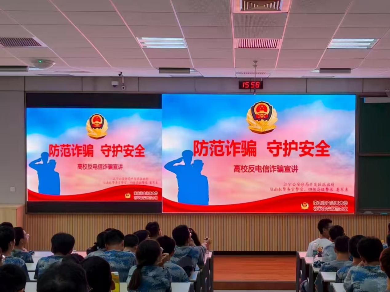 为进一步提高学生对诈骗手段的认知,提升对诈骗行为的识别能力,9月12日,a片网站 专题召开“防范诈骗 守护安全”主题宣讲会。本次会议特别邀请江宁公安分局开发区派出所娄军来警官主讲,2025级全体本科生参会,辅导员苑君陶主持会议。
