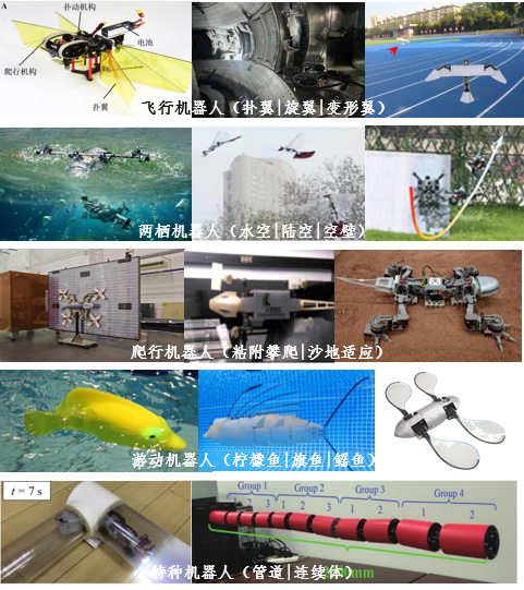 团队聚焦我国高端智能装备的重大战略需求,长期致力于该领域的创新研究与技术攻关。团队从生物灵感提取、结构-驱动一体化设计、智能感知与控制、系统集成优化等多个维度深入研究,突破了制约高性能仿生系统发展的若干关键技术与瓶颈。受鸟类入水瞬间姿态的启发,研发了“凌波”空-水跨介质飞行器,实现空中飞行、水下潜航及空-水介质的运动过渡。以昆虫在空中飞行和壁面攀爬行为的启发,研发了“凌影”空壁跨域飞行机器人,兼具空中飞行、壁面附着爬行能力,突破飞-爬转换控制难题。成果已经在中国科学院等离子体物理研究所、江苏省特种设备安全监督检验研究院等科研及工业界得到应用,为关键设施维护提供了数据支持,提升工业检测的安全性与效率。
