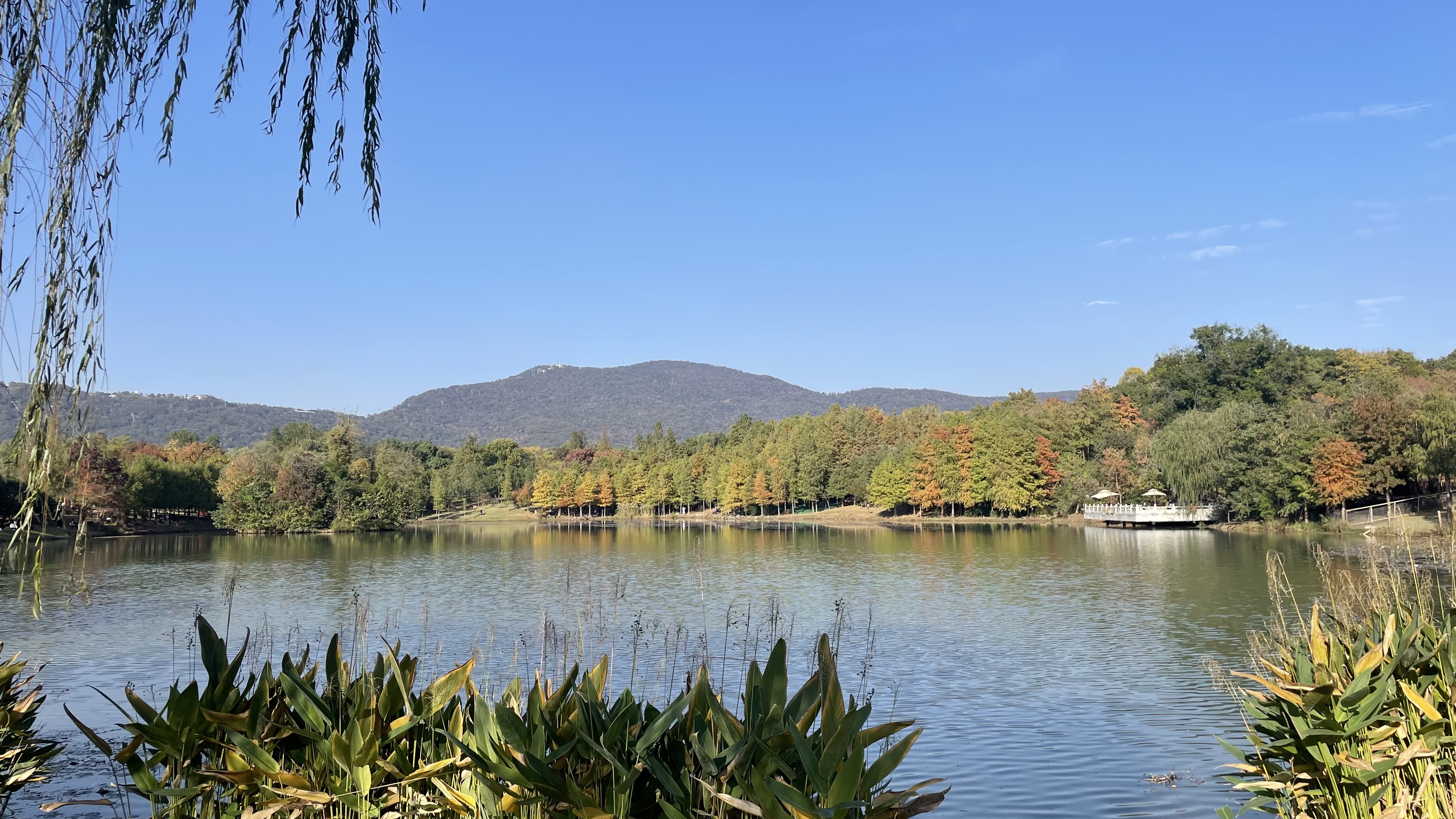前湖波漾影云动,栈道风吹落叶黄。
