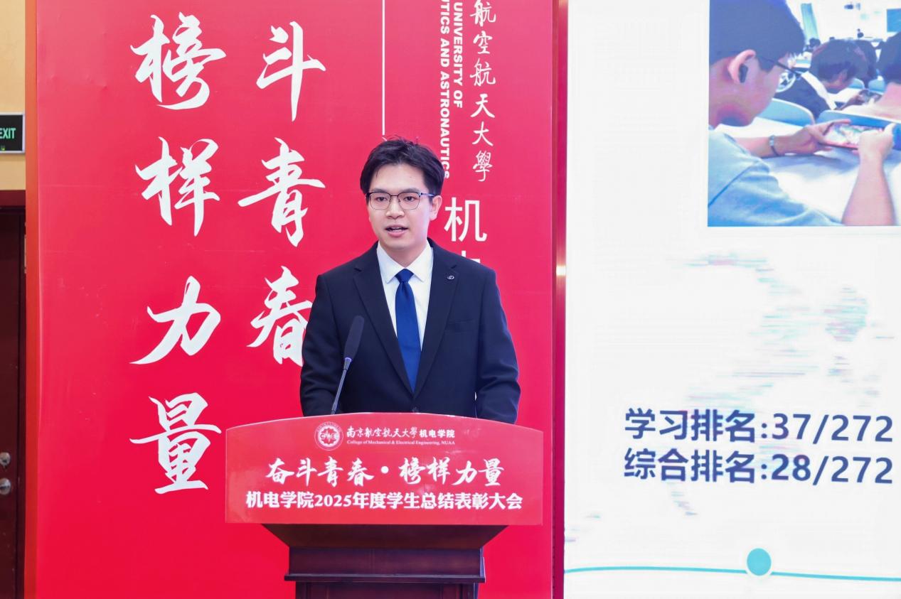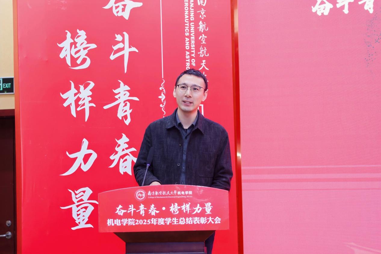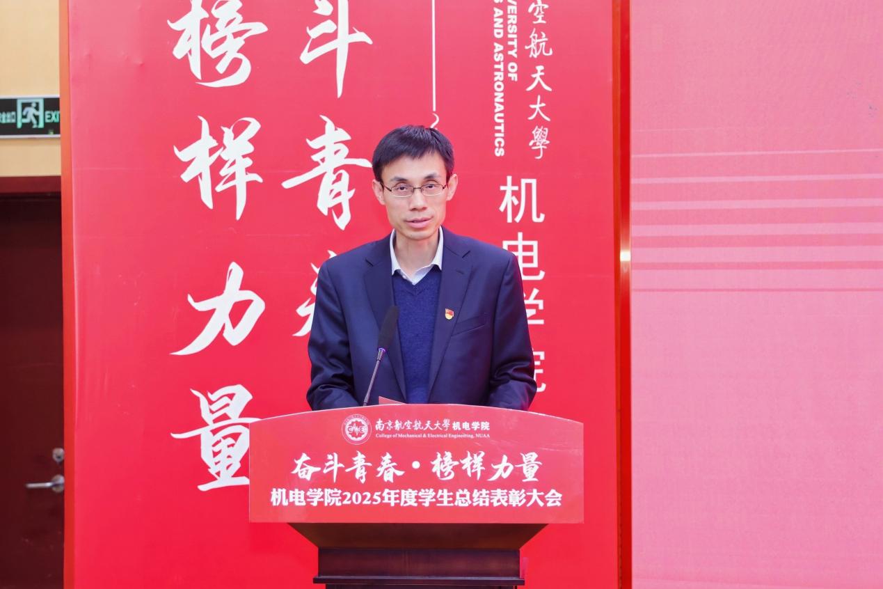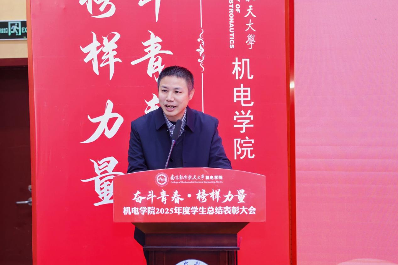 大会最后,a片网站 党委书记刘虎作总结讲话。他代表学院向获奖集体与个人表示祝贺,向设奖单位及校友表示感谢。刘虎书记指出,本次大会既是一次榜样事迹分享会,也是一堂生动的思政公开课。他勉励全体机电学子要铸牢信仰之基,将个人理想融入国家航空航天事业大局;要锤炼过硬本领,勇于攀登科技高峰,助推高水平科技自立自强;要永葆奋斗之姿,勇担时代重任,在推进强国建设、民族复兴的伟大实践中书写无愧于时代的青春篇章。