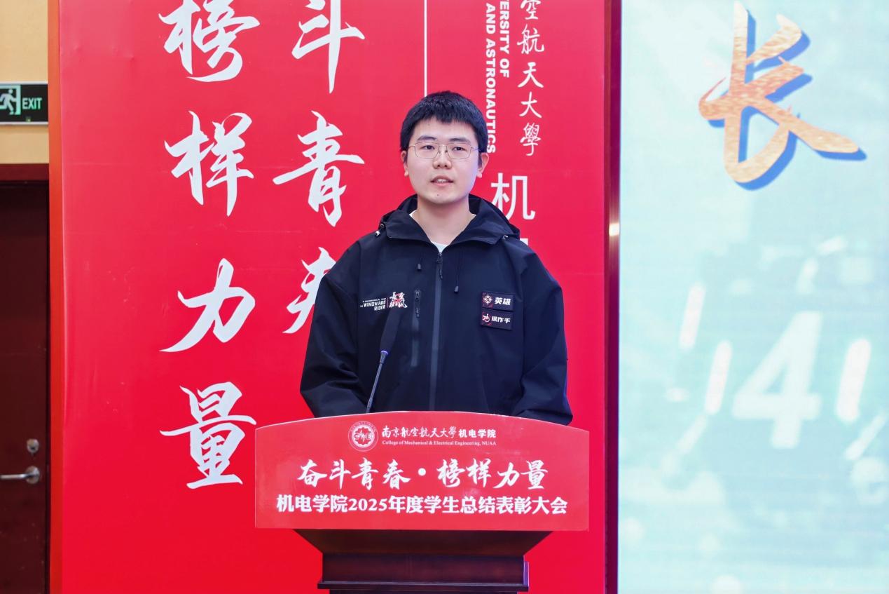 校长特别嘉奖获得者、2022级本科生吴洛以“打磨·啮合·载荷·装配”四个机械专业关键词串联起他的大学成长轨迹,讲述了从学业精进、科创攻坚到学生工作与社会服务的全面历练,展现了南航学子扎实的专业功底与全面的综合素质。