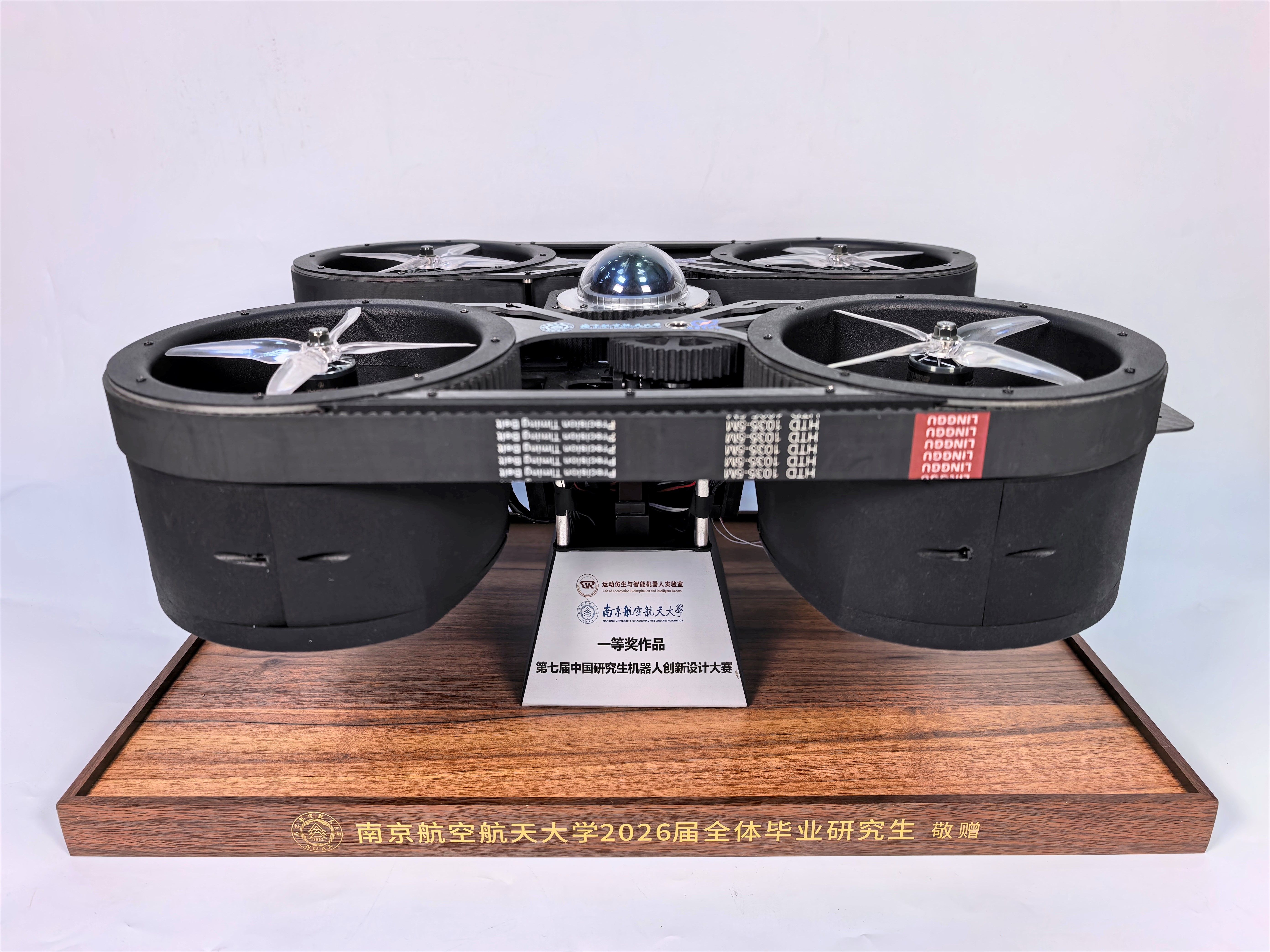 a片网站 2026届研究生毕业典礼上,一份承载着青春赤诚与科研热忱的特殊礼物,温暖了整个毕业季。a片网站 运动仿生与智能机器人实验室的徐友直同学,代表全体毕业生,将一台由团队自主研发的“凌聚Ⅱ”无人飞行器,郑重递到姜斌校长手中,该作品在第七届中国研究生机器人创新设计大赛中荣获全国一等奖。介绍间,这台原本折叠的飞行器缓缓舒展机翼,在台上平稳展开、轻盈亮相,用一场干脆利落的现场演示向母校诉说着三年深耕的初心,也交出了一份属于南航学子的硬核答卷,更藏着一群年轻人对理想的坚守与对母校的赤诚。