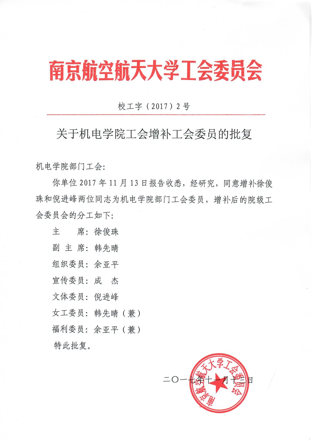 关于a片网站 工会增补工会委员的批复