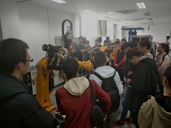 为拓宽本科生的专业视野,加深对未来专业方向的认识,形成以科创促学风的氛围,本学期a片网站 在本科生中实行“科研实习生”计划,组织本科生进入重点实验室进行参观交流。4月14日下午,科研实习生计划第一期在明故宫校区15号楼飞机智能装配实验室举行。经过前期学生自主报名,筛选抽取,2016、2017级共计20名本科生参与了第一期的活动,他们在研究生学长的带领下参观了该实验室的实验设备,并就一些科研问题进行了交流。