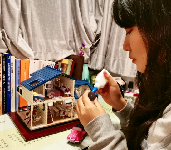 赵博雅同学热爱手工艺品,喜欢动手制作一些小物件,之前在网上买过一个手工小房子,但由于课业繁忙,小房子的制作过程又十分繁琐,一直没能抽出时间拼装制作,她把握这次假期机会,有效利用空闲时间,制作完成了向往很久的精致小房子。