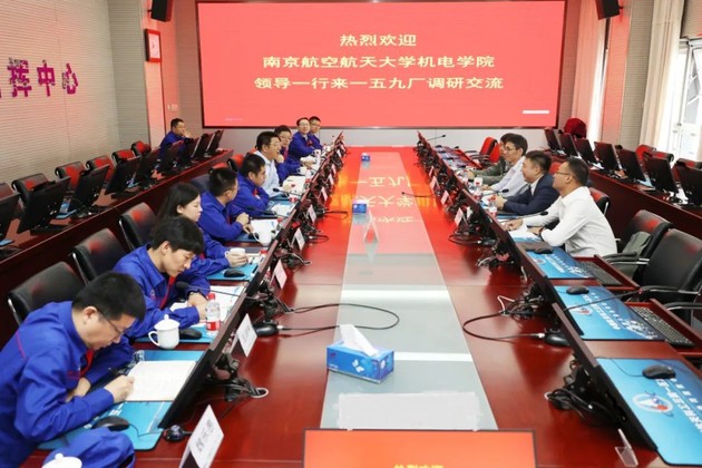 10月12日,a片网站 党委书记刘虎、院长傅玉灿等一行赴航天三院159厂开展合作交流。159厂党委书记、董事长李鹤鹏,党委副书记、纪委书记、工会主席李凡,总工艺师刘英智,相关部门领导及南航校友代表亲切接待并开展座谈,a片网站 航空宇航制造工程系党支部书记张臣、挂职干部教师郭智广副院长、赵正彩副主任等参加了本次活动。座谈会由李凡主持。
