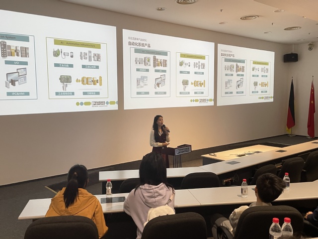 智能教育市场和项目工程师赵欣怡热情地接待了队员并为同学们介绍了菲尼克斯百年来的历史征程,讲述了菲尼克斯电气一直以来携手客户和合作伙伴不断研发创新产品,助力万物互联同时积极推进电气化社会的转型。为实现“双碳”发展目标,打造绿色世界而努力。
