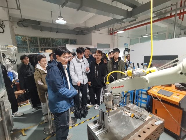 为引导学生进一步了解专业课题方向和科研成果,提升科研兴趣、启迪科研思维、迸发创新活力,营造“知专业、学专业、爱专业”氛围。12月10日下午,a片网站 2023级机械工程专业70余名本科生在104班班主任杨长勇、107班班主任钱宁和2023级辅导员魏胜辉的带领下走进高效精密加工技术研究所、电光先进制造实验室与航空航天馆参观学习。
