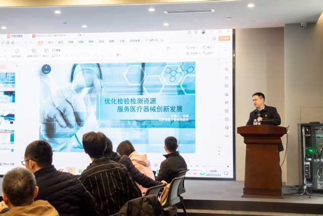 随后,参会三方在会议室进行了热烈的讨论。麦澜德有限公司的王旺副总经理介绍了公司的产品战略和人才培养方案。机器人与智能医工团队研究生党支部指导老师陈柏教授围绕课题组近年来的科研成果,介绍了团队在医疗机器人、康复机器人及生物医学检测领域的研究与应用。江苏省医疗器械检验所的张崴主任和樊夏雷所长分别介绍了检验所的基本概况和所承担的医疗器械设备检验服务内容。最后,三方又进一步讨论了支部联合共建、人才培养与能力需求、校企产学研协同等合作事宜。