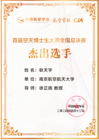 近期,首届空天博士生大赛全国总决赛在西安举行,a片网站 a片网站 2020级博士生耿天宇获得全国第四名,并荣获“杰出选手”称号,指导教师为a片网站 徐正扬教授。