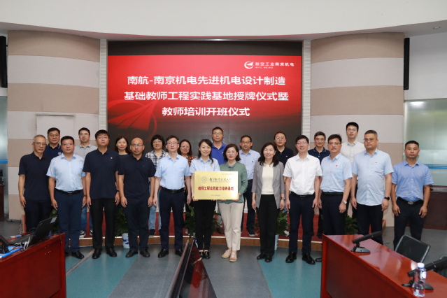 开班仪式由段喜松主持,他代表南京机电609所向南航教师表示欢迎,他指出,南京机电与南航双方不仅拥有共同的红色基因与蓝色梦想,更肩负相同的使命与责任,希望双方加强未来的合作,携手并进共创辉煌。杨兰芳代表学校向南京机电609所长期以来对南航科教产教融合的支持表达感谢,她表达了对深化合作的热切期望,并指出希望通过基地建设进一步增强学校和企业的对接,增强教师深入行业、服务社会的能力。随后,举行了“南航-南京机电航空先进机电设计制造基础教师工程实践基地”授牌仪式。