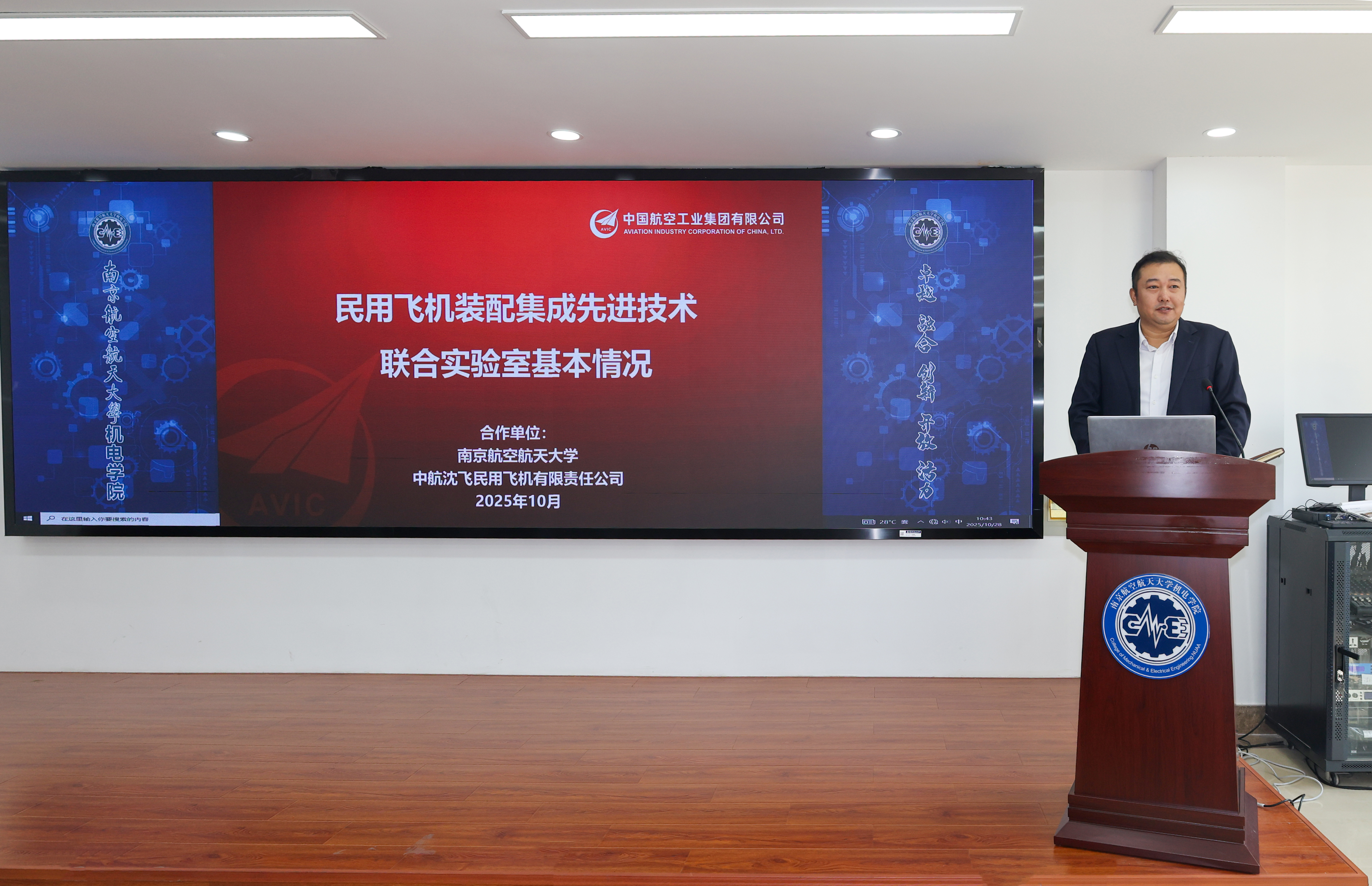 陶勇代表学校对邓玉东长期以来给予学校发展的关心和支持表示衷心感谢,并对其受聘兼职教授致以热烈祝贺。他表示,邓玉东从南航起步,扎根民用航空制造一线,带领沈飞民机实现了从“跟跑”到“并跑”再到“领跑”的跨越式发展,为国家民航事业的发展做出了重要贡献。此次受聘希望能将邓玉东研究员凝聚着实践智慧与行业视野的宝贵财富,转化为滋养南航学子成长的 “养分”,助力培养更多兼具理论素养与实践能力的高素质人才。他强调,在邓玉东的积极推动下,南航与沈飞民机的合作迈向了 “产学研用” 深度融合的新阶段,期待双方以联合实验室为桥梁,在科技攻关、人才培养与成果转化等方面持续深化协同,共同打造校企合作标杆,为航空强国建设贡献力量。