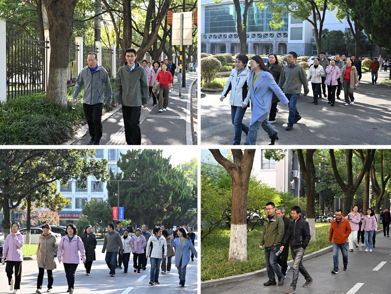 健步途中,老师们边走边聊,分享着工作与生活的点滴感悟,用脚步丈量秋日美景,用笑语点燃运动热情,在轻松愉快的氛围中强身健体。机械电子工程系薛建彬老师有感而发,作诗《七律•南航机电校庆健步走活动》纪念此次活动。